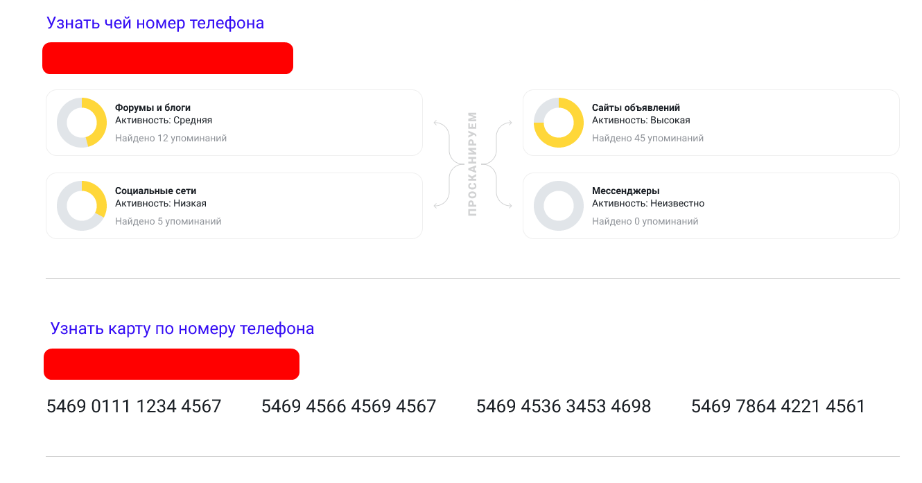 Проверить на мошенничество банковскую карту или телефонGetScam - это онлайн сервис проверки телефонов и банковских карт на мошенничество. Сервис позволяет проверить номер на наличие негативных отзывов и подозрительной активности в интернете, в социальных сетях, сайтах объявлений, форумах и т.д.